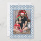 The road carries the promise of festivities. Along a hilly road, the Portuguese Rooster drives his vibrant blue car, a merry pine tree securely fastened atop. He’s returning from the market on the town's outskirts where he bought it and very soon it will burst to life with festive colour and light. Oh, the excitement is palpable as he anticipates adorning the tree. The merriment that lies ahead! As the winter magic weaves its spell, this heartwarming scene encapsulates the very essence of holiday joy that drives December days. The photo frame inside or background was inspired by blue tiles and these have holly leaves and flowers as décor.This product is ideal to offer to a Portuguese friend, to a relative, to someone of Portuguese descent, or to someone who appreciates Portuguese traditions. Remove or change the words and their font with Zazzle Design Tool.