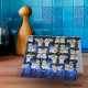 Glossy Blue Azulejo tiles on a thank you card in Portuguese. Obrigado.