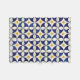 Hand painted traditional tiles from Portugal design. Pattern of perfection. Azulejo blue, white and yellow geometric pattern tile artwork. The perfect decorative pattern design.