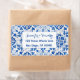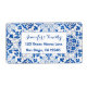 Beautiful, elegant bride and groom Wedding Return Labels. Portuguese tiles, vintage floral pattern, blue and white, Spanish, trendy design. You can personalise with your names and address.