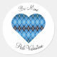 Posh Argyle Dark Blue Big Heart Classic Round Sticker