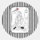A ladies dressing room framed by a vintage style ornate frame with distressed black striped background.