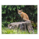 An red fox kit uses an old tree stump as a pedestal at the forest edge.