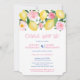 (Wedding) reception only invitation featuring watercolor lemons and pink florals, complemented by cobalt blue and white tile reverse. This was designed to invite guests to a large wedding celebration, having only had a very small wedding ceremony with few people present.