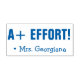 This encouraging rubber stamp design features the positive message "A+ EFFORT!" and a personalised teacher's, educator's or tutor's name. It could be used by a teacher or educator when marking assignments, to acknowledge that the student has done well.