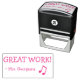 This fun rubber stamp design features the positive message "GREAT WORK!" and a personalised educator's name. It also features a decorative musical note. It could be used by a teacher or educator when grading student work, to acknowledge that a student has done an exceptional job.