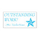 This inspiring rubber stamp design features the inspiring message "OUTSTANDING WORK!" and a customised educator's name. It also features a decorative star icon. It could be used by a school teacher, educator, or tutor when marking assignments, to indicate that a student has done well.
