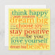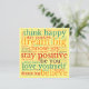 Colourful Positivity to send someone with this Word Art pattern of inspiring phrases in multicolors of red, yellow, orange, teal and purple with the motivational quotes, Believe, Choose joy, Think Happy, Dream Big, Stay Positive, Love Yourself and Be You, on a yellow background.