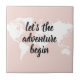Positive Pink Let's The Adventure Begin World Map Ceramic Tile