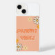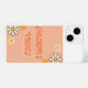 Groovy style phone case that says "positive vibes." Has flowers with a fun font style.