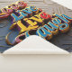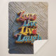 This lively design features the uplifting words "Love, Live, Laugh" in a spectrum of vibrant colors, accented with a shimmering golden touch. Set against a textured background that adds depth and warmth, the piece radiates positivity and invites viewers to celebrate life's joyful moments.