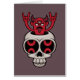 Vector cartoon illustration of a demon rising from a skull with heavy metal devil horn hand gestures.