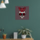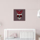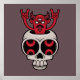 Vector cartoon illustration of a demon rising from a skull with heavy metal devil horn hand gestures.