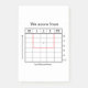 Prediction game tool: An easy way to report your goal score positions with this Post-it pad with the «We score from» pitch grid printed on it.