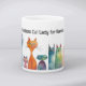 Whimsical cats on this fun coffee or cocoa mug for the post-menopausal childless cat lady in your life. AI assisted graphic purchased with commercial license. Artwork: PaintPixelCo