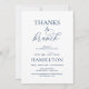 Beautiful Modern Romantic Navy Blue Script, Post wedding Brunch Invitation card (Thanks a Brunch). This is perfect for your post and elopement wedding celebration. Add your details in matching colour, font / lettering.