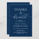 Beautiful Modern Navy Blue Romantic Script, Post wedding Brunch Invitation card (Thanks a Brunch). This is perfect for your post and elopement wedding celebration. Add your details in matching colour, font / lettering.