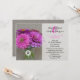 This post wedding reception invitation features a rustic mason jar with your monogram. The mason jar is filled with pink and purple zinnia flowers fresh from the garden with a burlap look background. All your post wedding reception details appear to the right. The burlap look continues on the reverse side of this invite to make a very pretty monogrammed summer floral photography post wedding reception invitation. Copyright henishouseofpaper