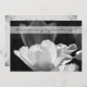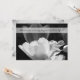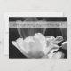 This post wedding invitation features a black and white photograph of spring tulips. Above the tulips are the words "Love makes every day more beautiful." The back of the invitation features a textured design created from the tulip. A lovely way to invite your guests to a post wedding reception. Copyright henishouseofpaper