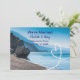 Ideal invitation for couples getting married in the Greek island of Crete who want to celebrate their wedding with friends and family back home on their return. Lovely scenic beach mountains and ocean image and pretty white beads in the shape of a heart and sweet gold love hearts