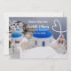 Ideal invitation for couples getting married in Santorini who want to celebrate their wedding with friends and family back home on their return. Lovely Santorini photo image and pretty white beads in the shape of a heart and sweet gold love hearts