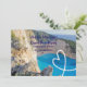 Ideal invitation for couples getting married in Zante who want to celebrate their wedding with friends and family back home on their return. Lovely beach, ocean and cliffs view of Zante image and pretty white beads in the shape of a heart and sweet gold love hearts