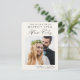 Elegant light cream save the date announcement postcard for your post elopement/private wedding reception. The front features your wedding day photo and "Save The Date For Our Happily Ever After Party" in a mix of simple typography and a modern script; add your first names and reception date. On the reverse, personalise your save the date message in more detail and add your married names in a signature-like script.