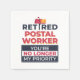 Funny post office worker retirement gag that's perfect for a coworker on their last day at work. The design text says "Retired Postal Worker, You're No Longer My Priority"