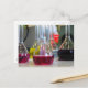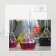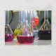 Postcard with flasks containing colourful liquids. Chemistry. Can be used for postcrossing.