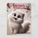 Spread holiday cheer with this delightful 'Meowy Christmas' postcard! This design features a white fluffy cat with bright, curious eyes, nestled in a cosy, festive scene with snowflakes gently falling around. The cat wears a cute red Santa hat, adding a touch of Christmas charm. The words 'Meowy Christmas' are playfully written in a warm, cheerful font, capturing the spirit of the season. Perfect for cat lovers and anyone who wants to send a cosy, feline-inspired holiday greeting to friends and family!