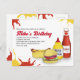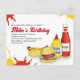Fire up the grill and get ready for a fun-filled summer celebration with this cute birthday party invitation! Perfect for outdoor BBQ and backyard parties, this whimsical design features playful illustrations of hamburgers and hotdogs, complete with splashes of ketchup and mustard for that extra touch of flavour. Whether you're hosting a sunny afternoon cookout or a casual evening get-together, this invitation sets the tone for a laid-back and cheerful vibe your guests will love. Ideal for kids or adults, this invite brings the charm of a classic barbeque to life—just add good food and great company!