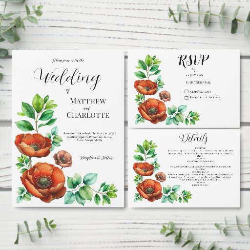 Sublime Watercolor Red Poppies in Vintage Style Designed by Sonia Chivarar