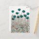 This item is a postcard featuring my watercolor painting of flowers. It features a field of teal poppies against a grey background speckled with orange and teal. Modern style colour palette. This would be a lovely postcard for someone who likes midcentury modern style or scandinavian decor. Be sure to check out the rest of my shop where I have more midcentury modern art https://www.zazzle.com/store/popwheel