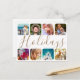 Personalised 8 rounded square photos postcard with light brown tan holidays text. Send while on vacation.