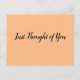 Classy, but simple postcard for those times when you have a specific fleeting thought about someone and want to 'quickly' let them know. A phone call will certainly do, but this special keepsake lasts for however long the recipient desires. Enjoy the variety of colours and messages!