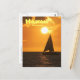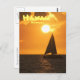 Send a portrait-formatted postcard greeting of a catamaran sailing out on the ocean beneath a gorgeous copper-coloured sunset off the Waikoloa coast of the Big Island of Hawaii. "Hawaii", "Waikoloa", and back text is customisable: change wording, change fonts, change size, change colours, reposition it, or remove it completely.