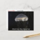 This photo of a white crystal jelly, Aequorea victoria, was taken (after lots of tries!) by me through the glass at the Monterrey Bay Aquarium, Monterrey, CA. It shows the upside down bowl-shaped, whitish jellyfish body against a black background. The curve of the bowl is almost transparent, with glowing white tentacles floating downward. Small specks of light float randomly. Copyright Gail Storrs 2007