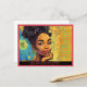 Share a powerful message of faith and resilience with this vibrant semi-gloss postcard, perfect for uplifting loved ones or adding inspiration to your own collection. The front features an artistic illustration of a confident woman with curly hair pulled into a bun, her thoughtful expression exuding strength and grace. She has a deep, warm complexion with captivating brown eyes and vibrant pink lips. The intricate background is filled with doodles, sketches, and words, evoking creativity and thoughtfulness in shades of blue, yellow, and green.
