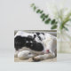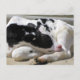 Postcard designed with photography taken of a heifer napping in the afternoon sun. The photo was captured at a petting zoo in Connecticut by artist, Barbara Giordano.