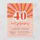 Add a trendy, retro-inspired vibe to your event with these 40th birthday party invitations. Simple design and easy to customise with all the party details. Peach, pink and red background swirl with the text: "40 and fabulous! Join the celebrations for (name's) birthday". Bright, bold and colourful! What could be more fabulous?
