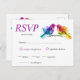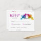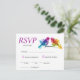 The back of the postcard maintains the cohesive and visually appealing design with the same captivating artwork of the Rainbow Lovebirds. On the right side, there is space for the recipient's address, ensuring that the RSVP postcard can be easily mailed back to the couple. The left side of the back can include a brief message or instructions, thanking guests for their response and reinforcing any important details.