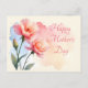 Postcard Mother's Day .Pink Rose Hip Flowers Holiday Card.