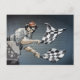 Quality Motor Sports Postcard: A Motor Sport Race Official waving a Chequered Flag to finish a race event. Design by Frank Ramspott, Munich, Germany.