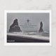 Horizontal postcard of Iceland's black pillars at sea and Vik's black sand beach.