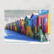 This postcard shows the colourful beach huts at Muizenberg Beach near Cape Town - a top tourist destination in the Western Cape province of South Africa.