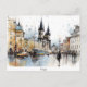 Postcard with Prague scenic mediaeval city in Czech Republic
