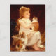 "Playing with the Kitten" is a beautiful image depicting a young girl playing with a kitten while mama cat watches. It was painted by the artist Emile Munier in 1893.