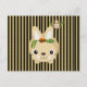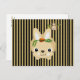 Postcard Rabbit Monkey Brown Stripe Carrots Peas