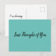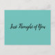 Classy, but simple postcard for those times when you have a specific fleeting thought about someone and want to 'quickly' let them know. A phone call will certainly do, but this special keepsake lasts for however long the recipient desires. Reach out and surprise someone with your thoughtfulness! There are loads of color and a variety of messages to choose from.