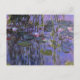 A beautiful postcard featuring Water Lillies. Water Lilies (or Nymphéas), is a series of approximately 250 oil paintings by French Impressionist Claude Monet (1840-1926). The paintings depict Monet's flower garden at Giverny and were the main focus of his paintings during the last thirty years of his life. These beautiful paintings are displayed in museums throughout the world.